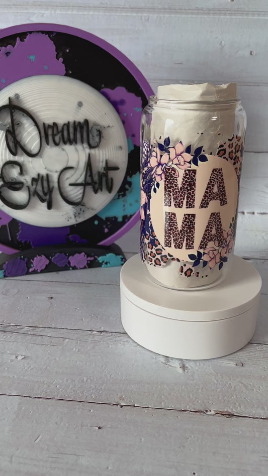 RTS Cheetah Floral Mama 16oz Glass Cup