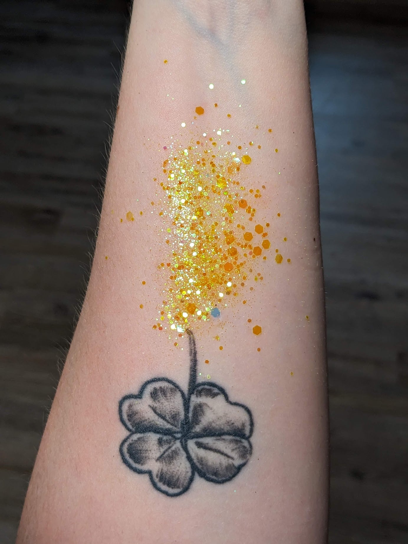 Appearance depends on amount applied. Everyone has their own style and while these are Glitter Hair Gels, they can be used on skin!