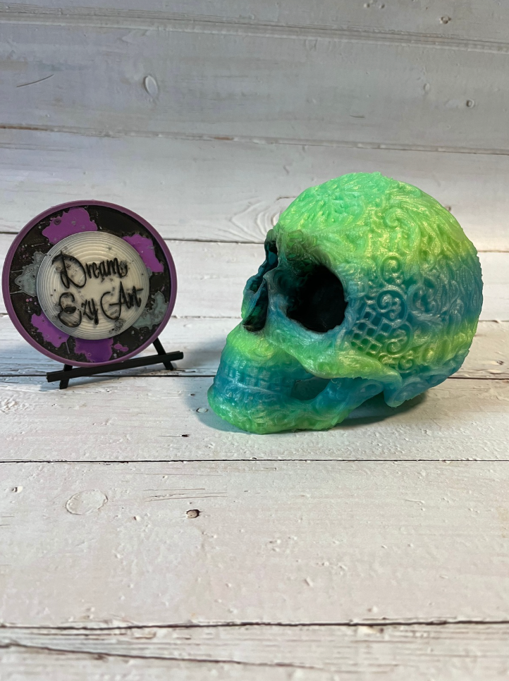 Whether you're curating a gothic shelf, creating a Halloween centerpiece, or simply love bold, artistic skulls, this piece makes a striking statement day or night. Bursting with personality, it’s a must-have for collectors of the weird and wonderful.