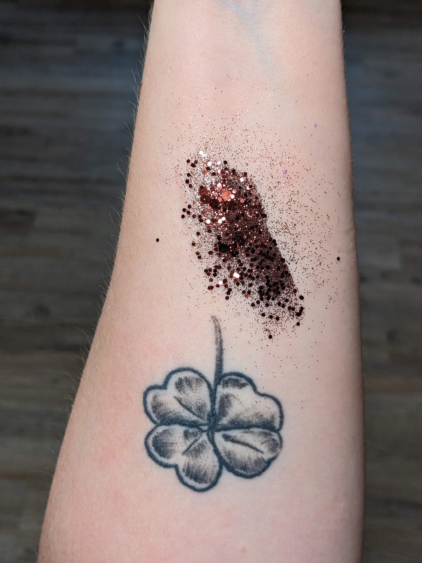 Appearance depends on amount applied. Everyone has their own style and while these are Glitter Hair Gels, they can be used on skin!