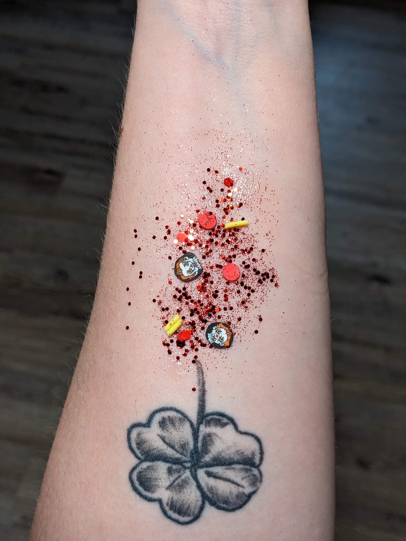 Appearance depends on amount applied. Everyone has their own style and while these are Glitter Hair Gels, they can be used on skin!