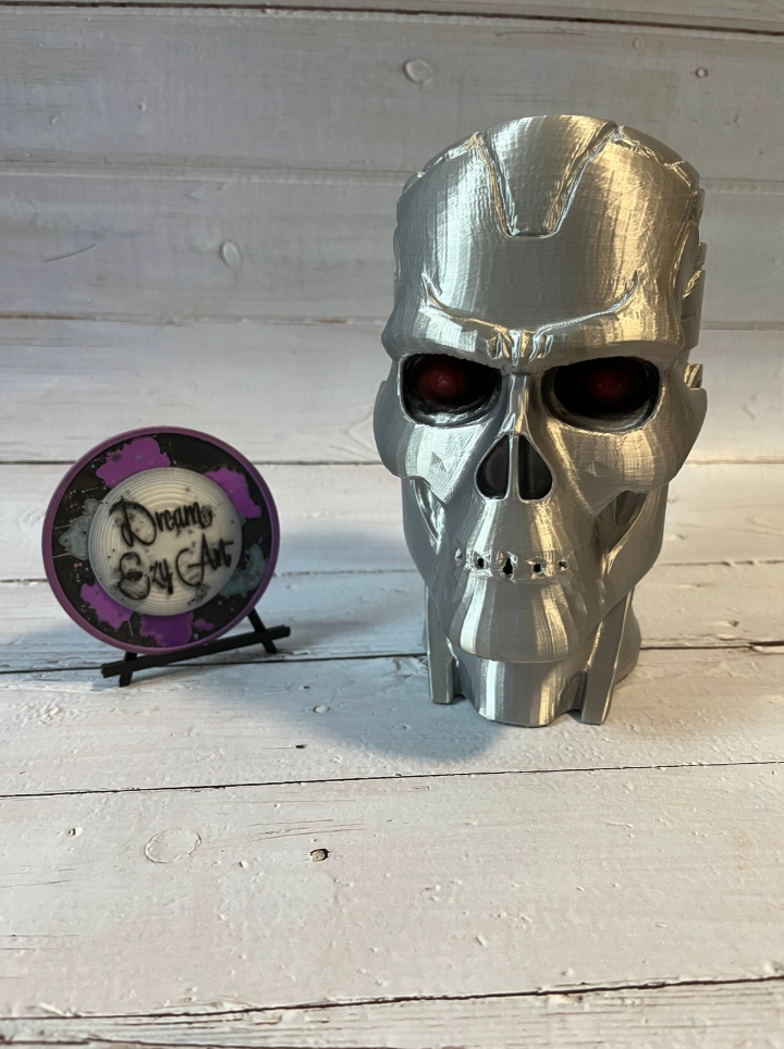 Step into the future of fear with the Cyber Reaper Skull – a striking fusion of sci-fi sleekness and skeletal menace. This bold sculpt features sharp contours, angular details, and deep red eyes that seem to pierce straight through you.