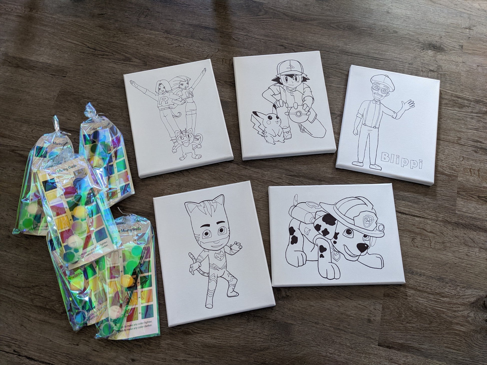 The image will be drawn on. The kit includes the canvas (size and design of your choice), 6 paint colors, a paint brush, and a color mixing guide.