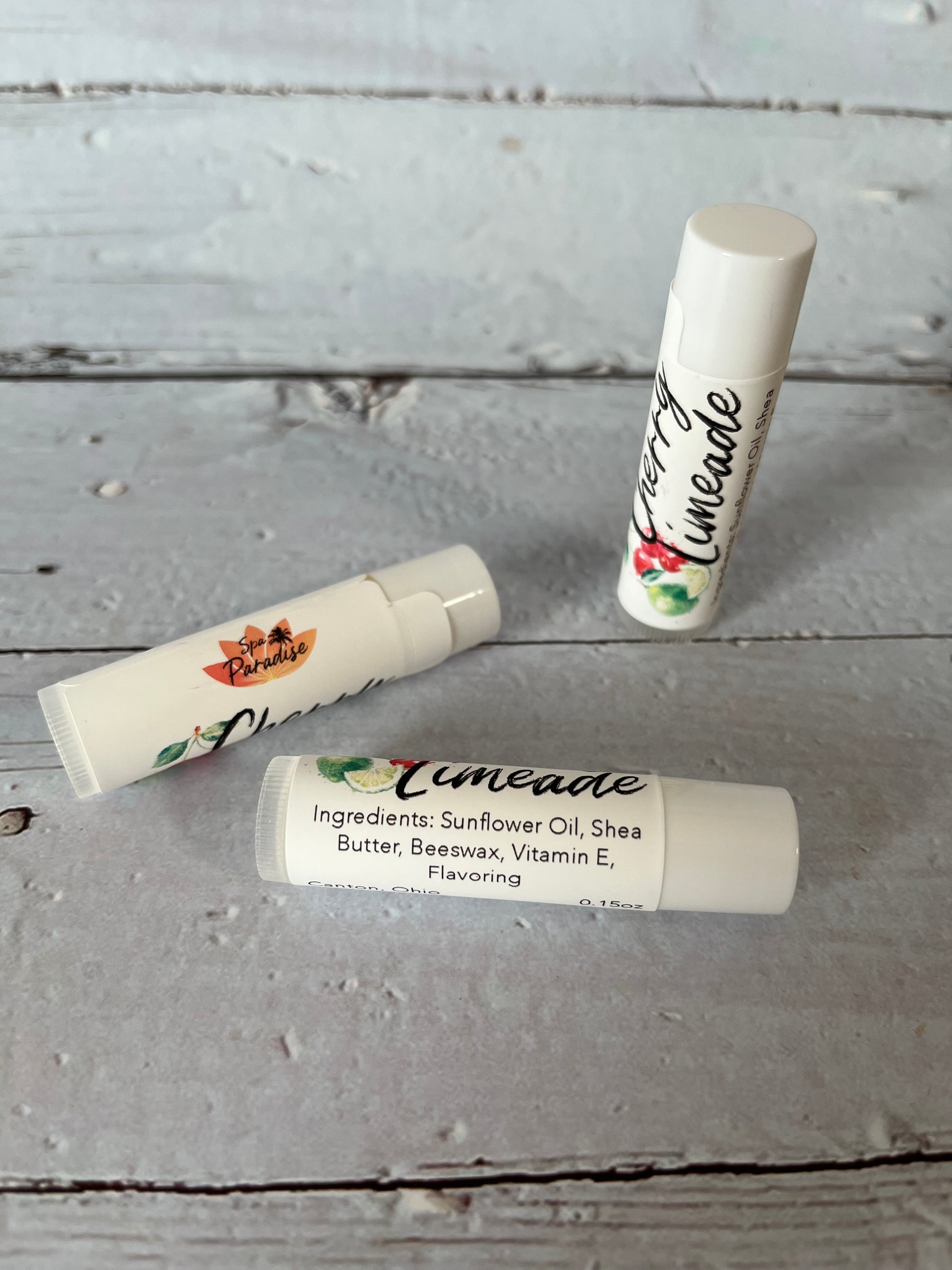 Handmade with a luxury blend of Shea Butter, Sunflower Oil, Beeswax, Vitamin E, and Flavoring to keep your lips moisturized.