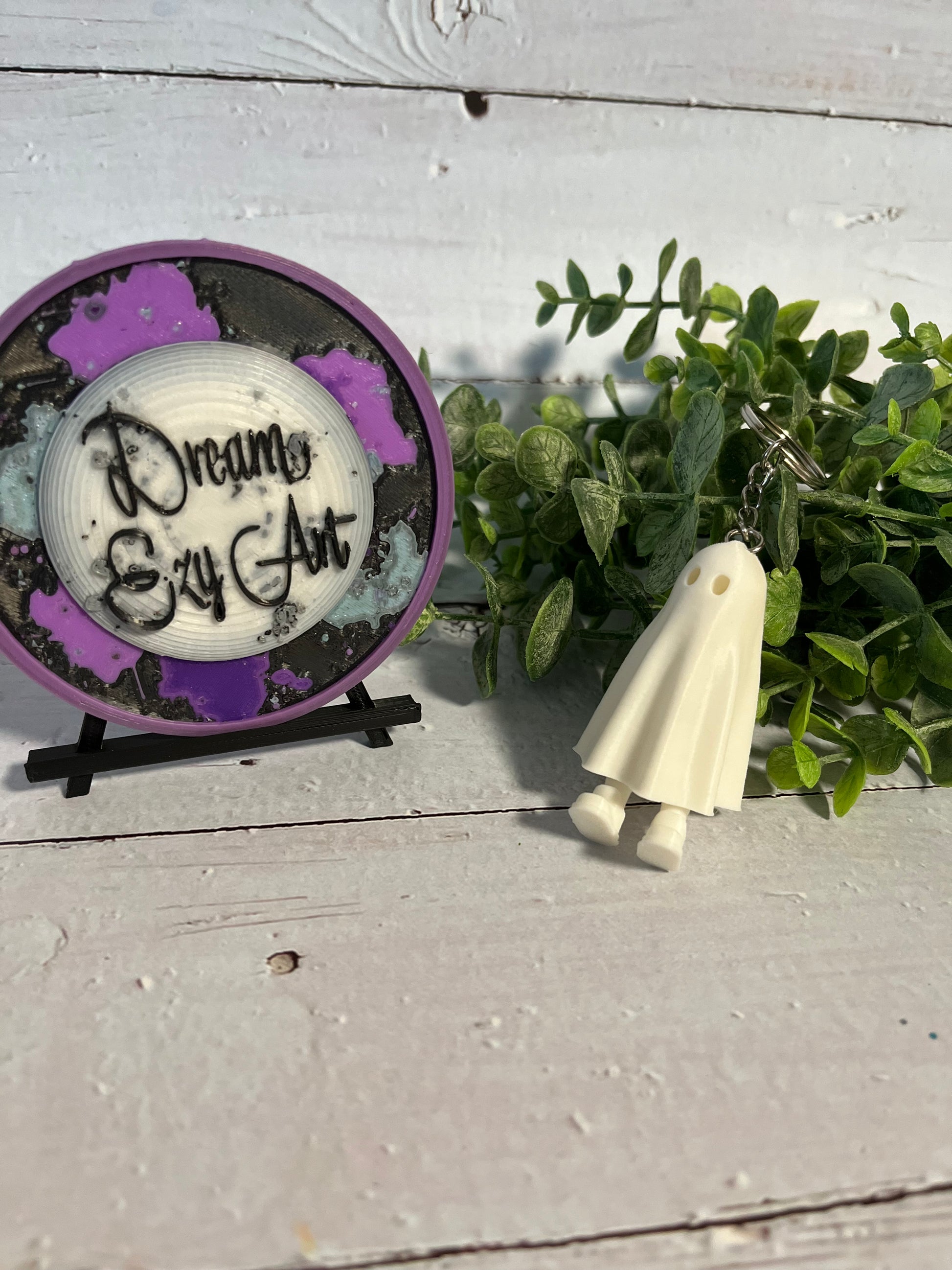 Introducing the spooky and playful Ghost With Dangle Feet keychain! Hang this adorable ghost with his dangling feet from your keys for some added character. Perfect for ghost lovers or anyone looking for a unique accessory. (Don't worry, he won't haunt you!)