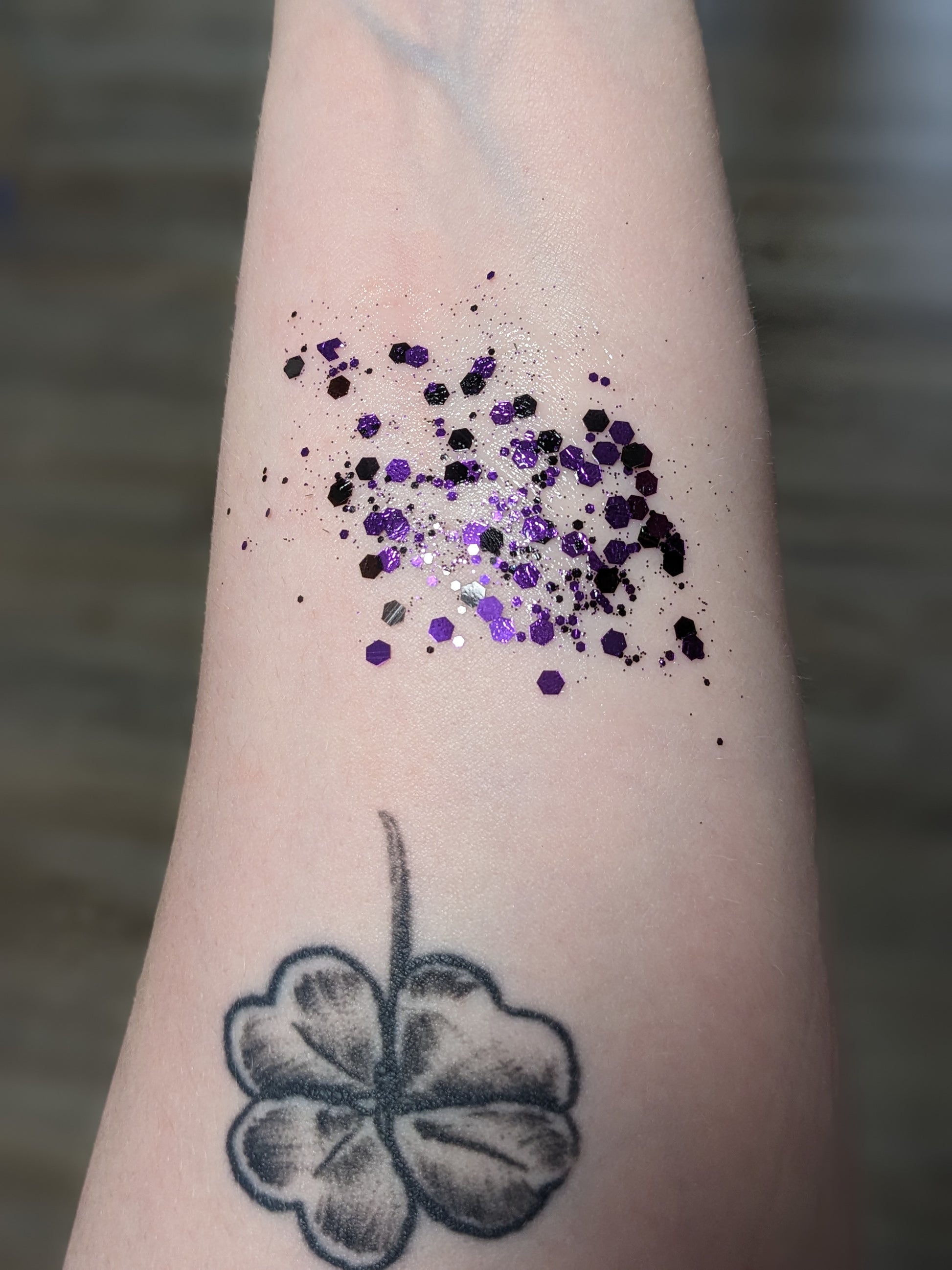 Appearance depends on amount applied. Everyone has their own style and while these are Glitter Hair Gels, they can be used on skin!