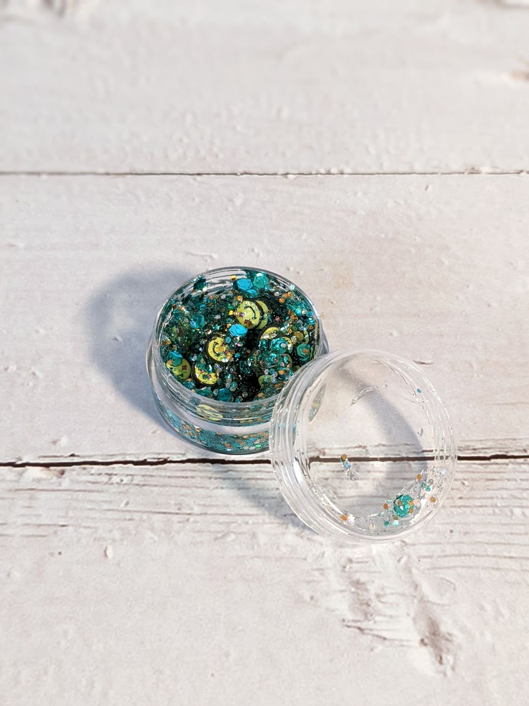 Appearance depends on amount applied. Everyone has their own style and while these are Glitter Hair Gels, they can be used on skin!