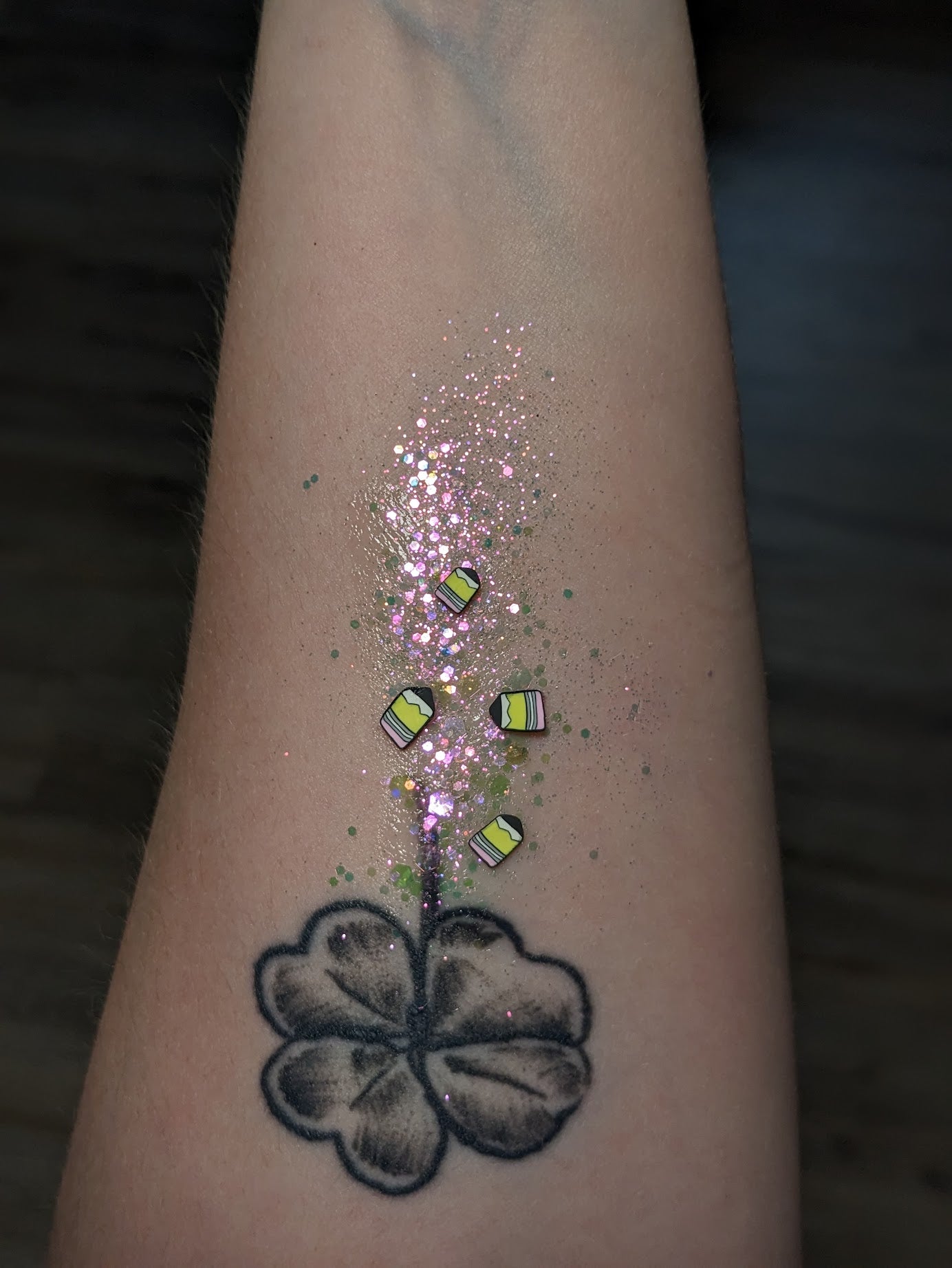 Appearance depends on amount applied. Everyone has their own style and while these are Glitter Hair Gels, they can be used on skin!