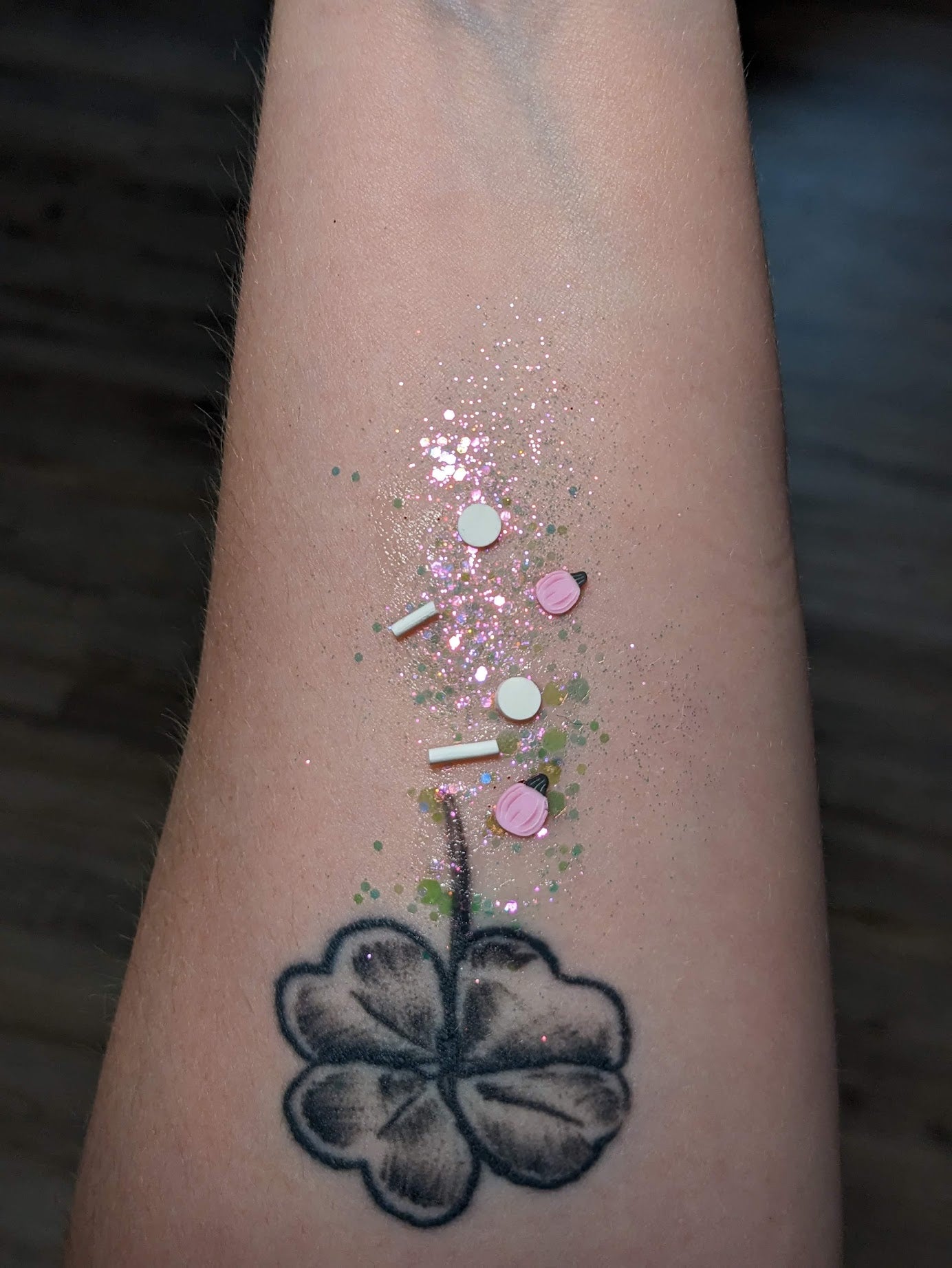Appearance depends on amount applied. Everyone has their own style and while these are Glitter Hair Gels, they can be used on skin!