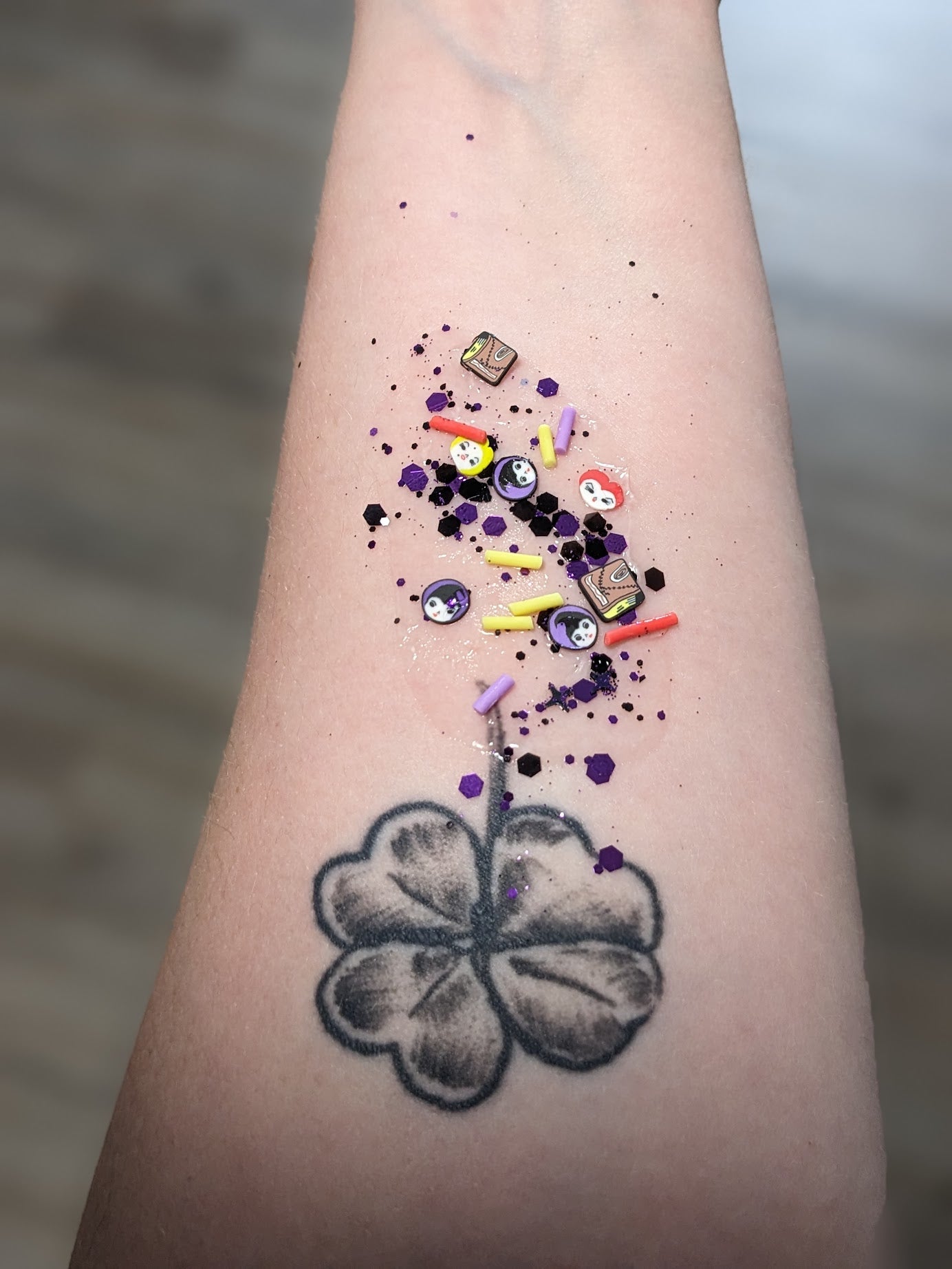 Appearance depends on amount applied. Everyone has their own style and while these are Glitter Hair Gels, they can be used on skin!