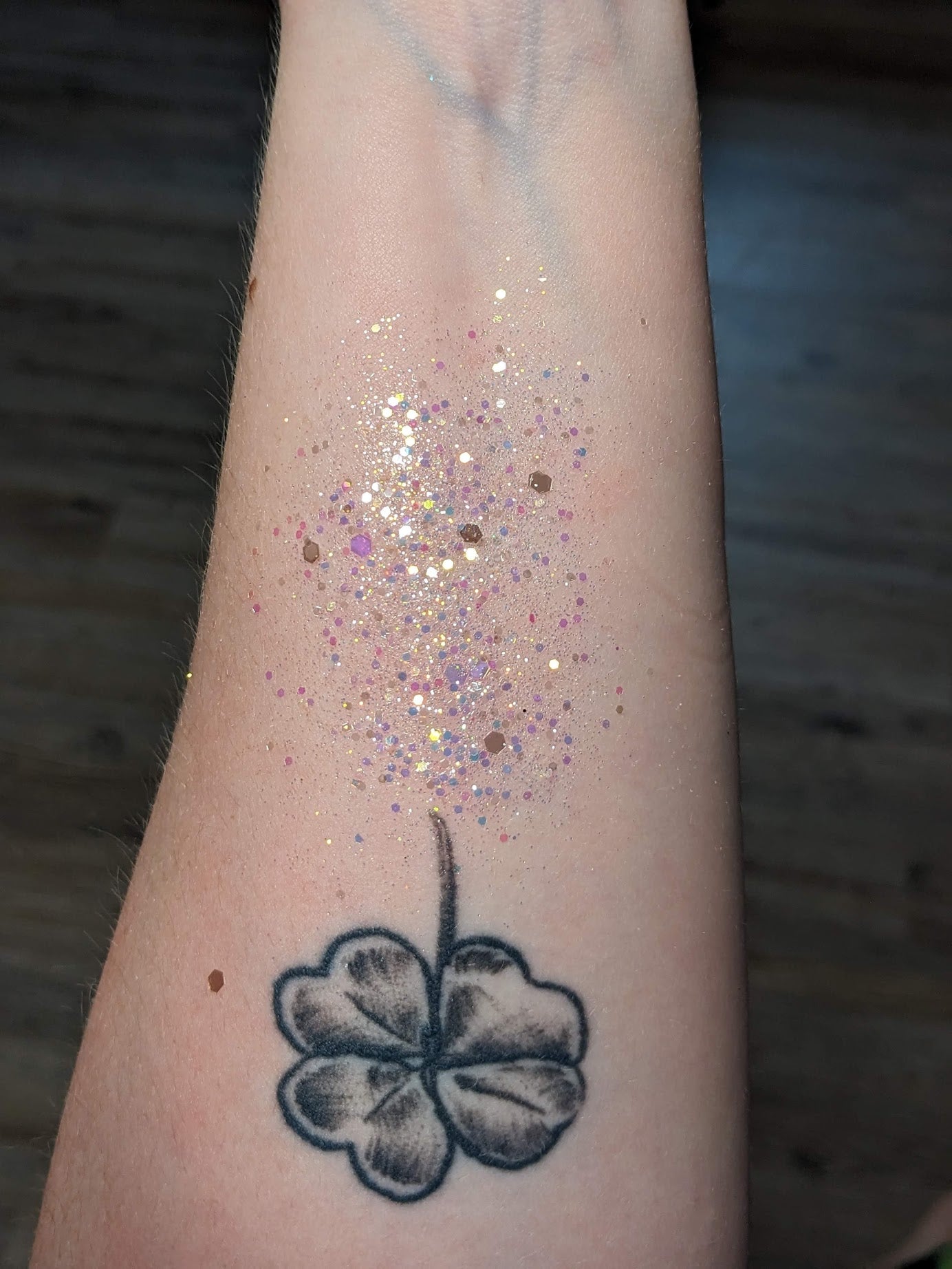 Appearance depends on amount applied. Everyone has their own style and while these are Glitter Hair Gels, they can be used on skin!
