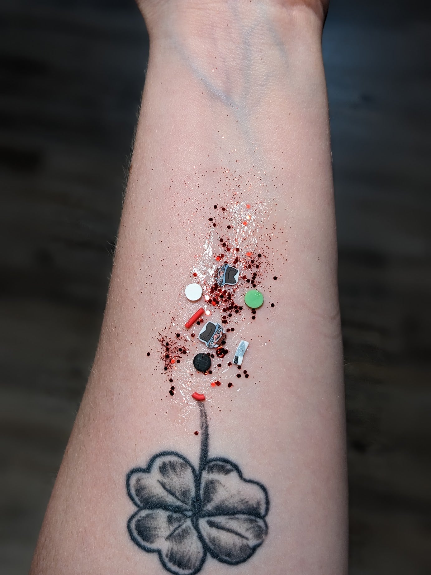 Appearance depends on amount applied. Everyone has their own style and while these are Glitter Hair Gels, they can be used on skin!