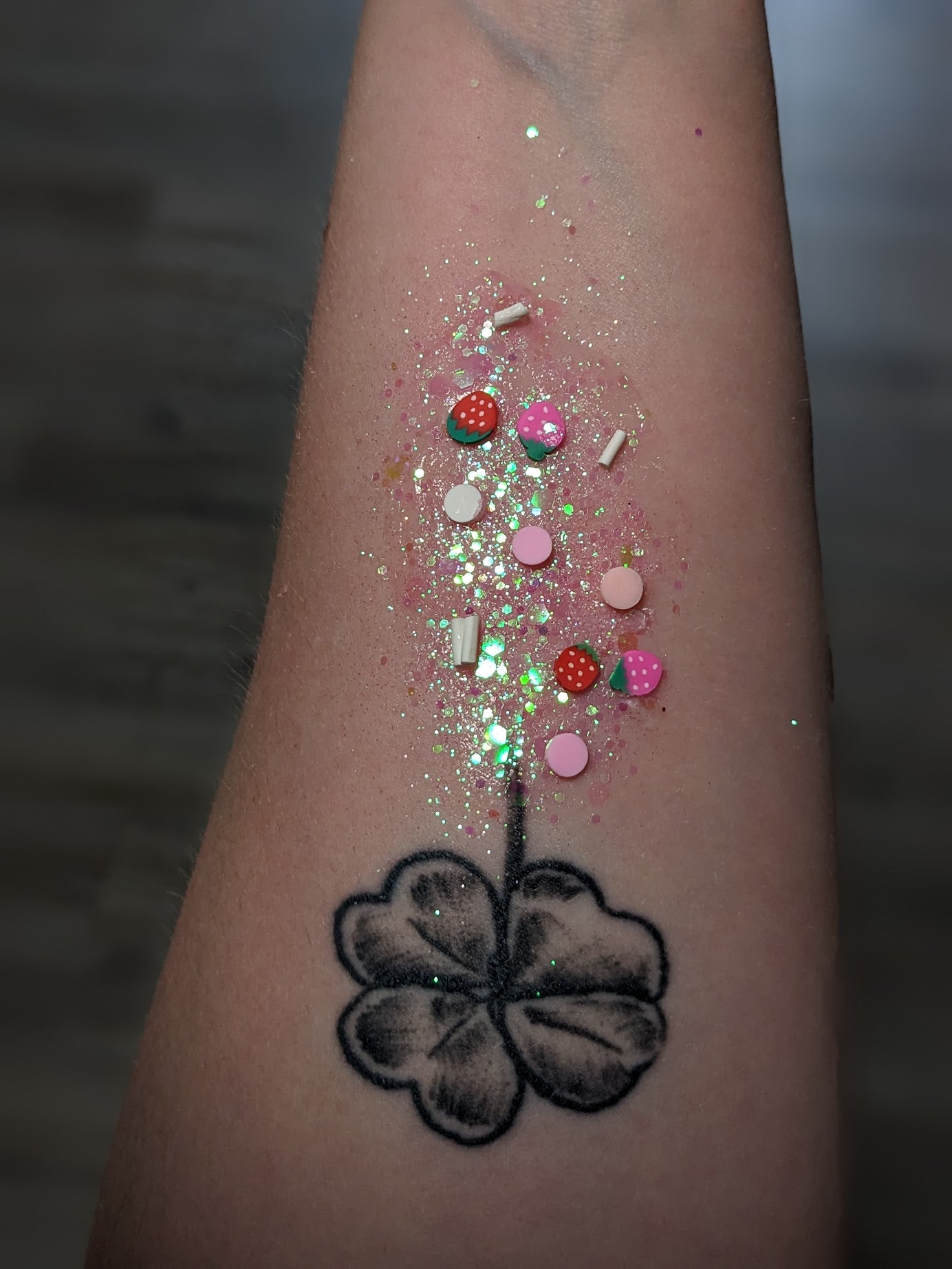 Appearance depends on amount applied. Everyone has their own style and while these are Glitter Hair Gels, they can be used on skin!
