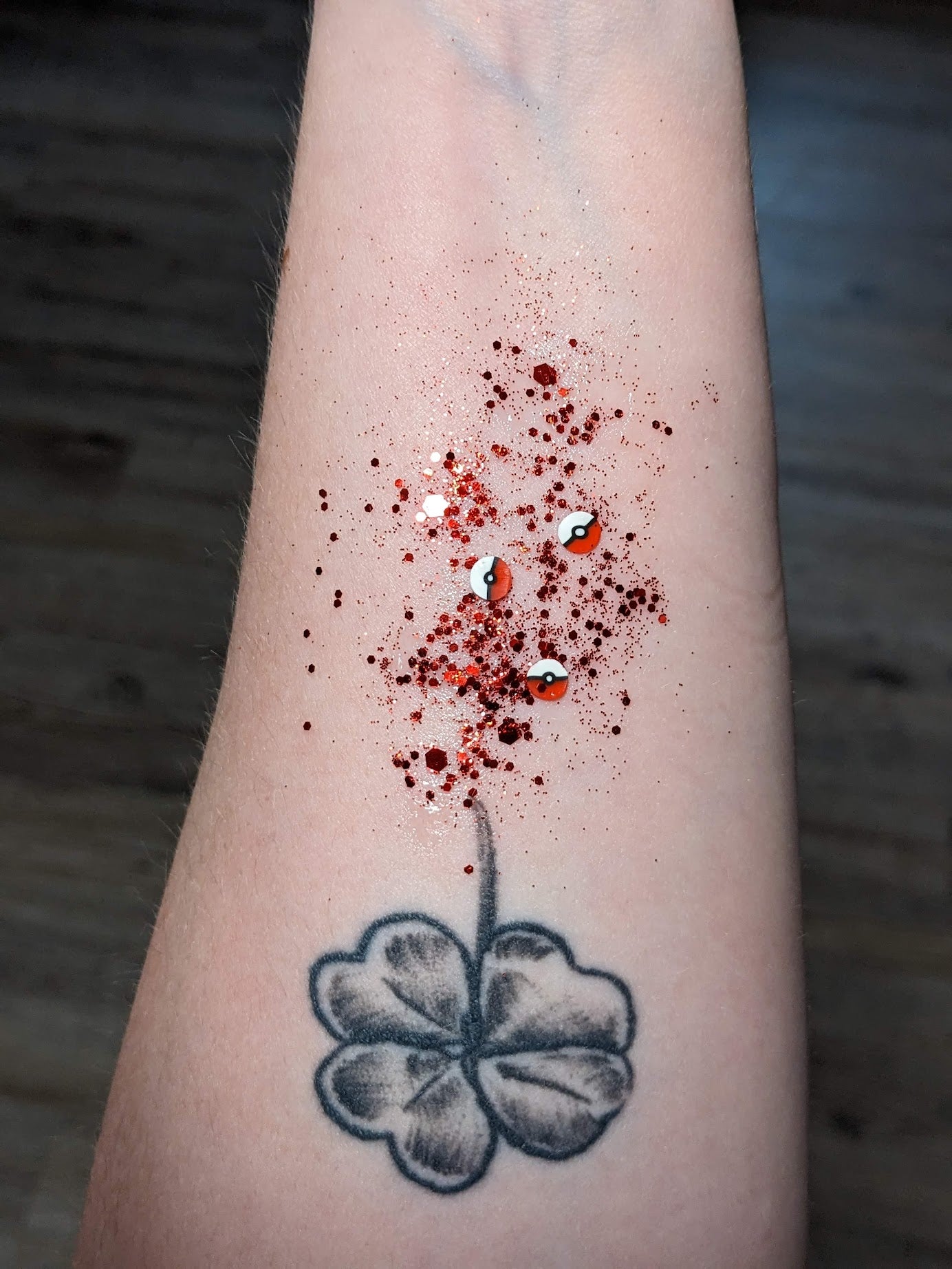 Appearance depends on amount applied. Everyone has their own style and while these are Glitter Hair Gels, they can be used on skin!