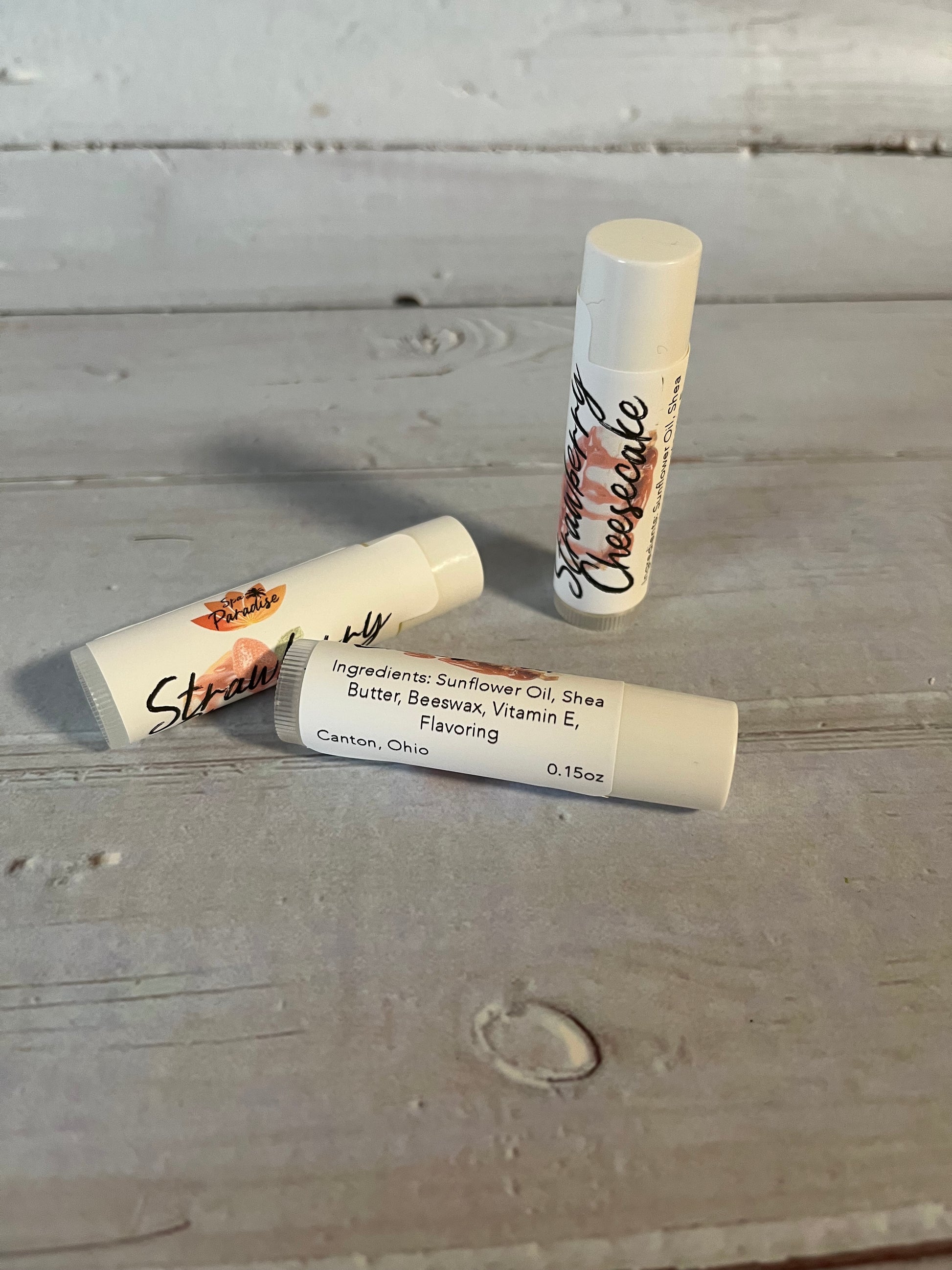 Handmade with a luxury blend of Shea Butter, Sunflower Oil, Beeswax, Vitamin E, and Flavoring to keep your lips moisturized.