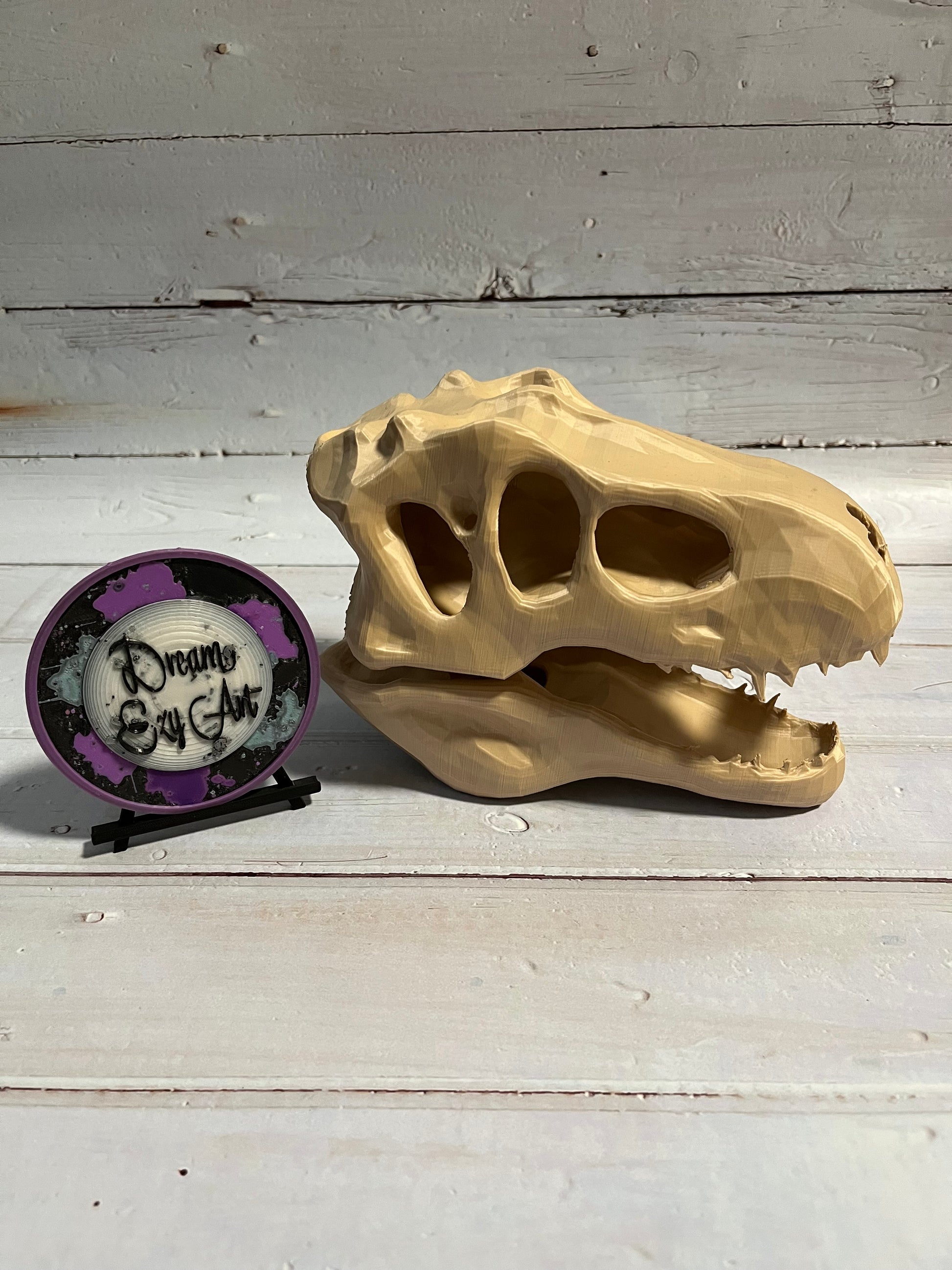 Bring prehistoric adventure to your space with this 3D printed T-Rex Skull! Perfect for dino lovers, it adds a fun, fierce touch to any room or desk. Lightweight yet detailed, it’s a playful way to celebrate the king of the dinosaurs without the roar.